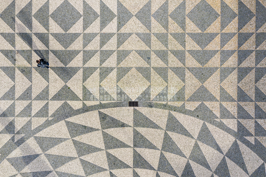 The Portuguese cobblestone pavement, when it forms patterns and/or is combined with another palette (black basalt or, more commonly today in Lisbon, black limestone, grey, or even other colours such as yellowish ochres or reddish pinks, for example), is referred to by the more specific term Portuguese cobblestone artistic pavement. This work is carried out according to a particular design pattern.